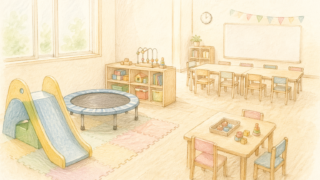 はじめて通い始めた療育の時間。その場所は、ひとつの部屋の中ですべてが完結するようにできていました。入ってすぐのスペースには、すべり台やトランポリン。奥に進むと、机の上におもちゃが並んでいて、さらにその奥には、長机と小さな椅子が並んでいました...